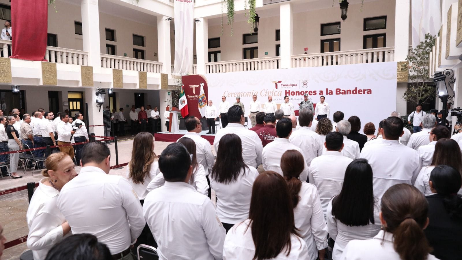 Como parte de la ceremonia cívica, el juramento a la bandera estuvo a cargo de Rómulo Pérez Sánchez, subsecretario de Enlace Legislativo, mientras que, Armando Núñez Montelongo, subsecretario de Transporte Público, y Tomás Gloria Requena, subsecretario de Gobierno, dieron lectura a las efemérides de la semana.