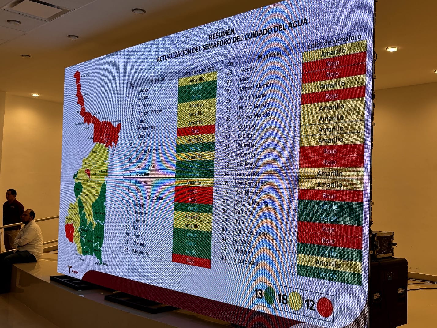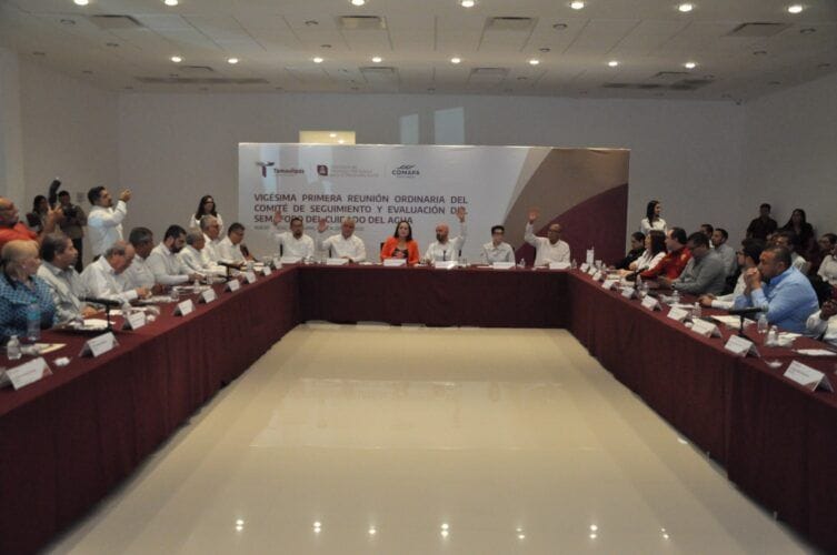 Nuevo Laredo, Tamaulipas, agosto 08 de 2025 . – Durante la vigésima primera reunión ordinaria de seguimiento y evaluación del Semáforo del Cuidado del Agua, la Secretaría de Recursos Hidráulicos de Tamaulipas presentó la actualización de colores en los 43 municipios del estado, como parte del balance hidráulico justificativo.