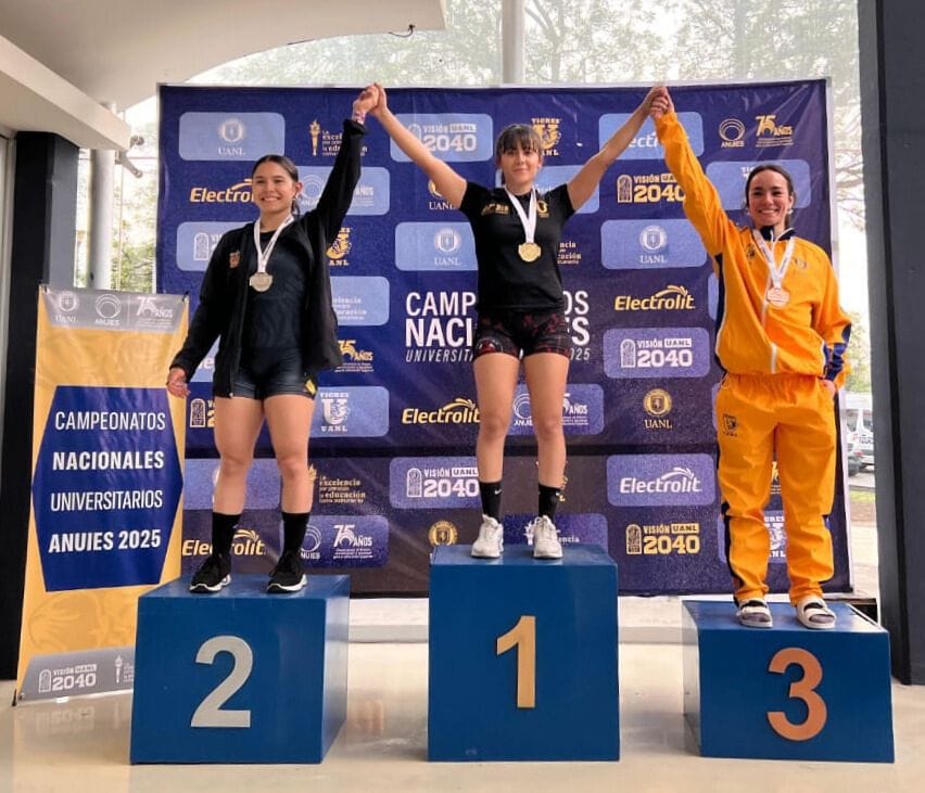 Matamoros, Tamaulipas, 22 de mayo de 2025 .- Cassandra Michell Vélez Arriaga, estudiante de Ingeniería en Logística Internacional en la Universidad Tecnológica de Matamoros, hizo historia al conquistar el título de Campeona Nacional ANUIES 2025 en halterofilia, categoría libre universitaria de 49 kg, tras obtener oro en arranque olímpico y dos platas en envión y biatlón durante el Campeonato Nacional Universitario realizado en Monterrey, Nuevo León.