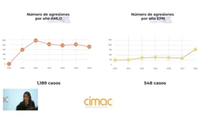 Destacando asi, el incremento de la violencia contra las mujeres periodistas en México un 117% en las agresiones en el sexenio del expresidente Andrés Manuel López Obrador con respecto al período de Enrique Peña Nieto.