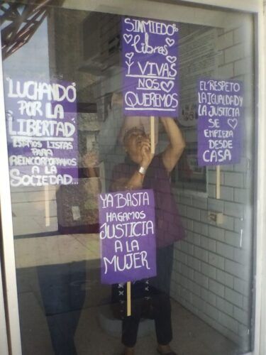 Las pancartas fueron colocadas en el exterior del centro penitenciario para permitir que las personas que transitan por la zona puedan conocer los mensajes elaborados por las mujeres internas, en ejercicio de su derecho a la libre expresión.