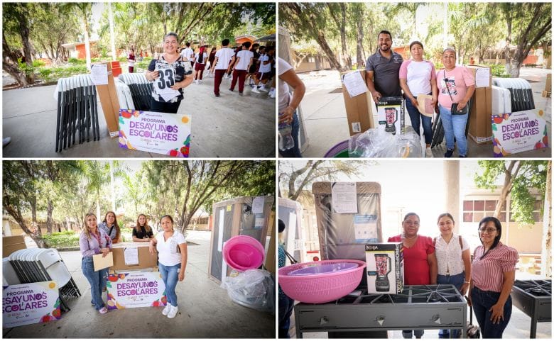 Refrigeradores, estufas, licuadoras, ollas, sartenes, entre otros enseres fueron entregados en escuelas de los municipios de Casas, Padilla y Güémez, en la región centro de Tamaulipas, para fortalecer la preparación y entrega diaria de raciones alimenticias calientes con calidad nutricia.