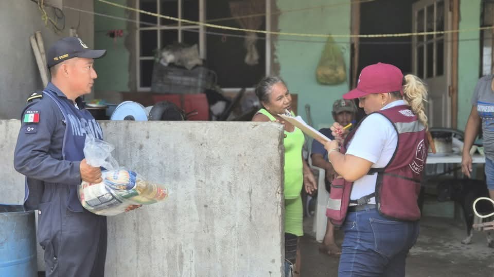 Elementos de la Secretaría de Marina, la Comisión Nacional del Agua (Conagua), Protección Civil Tamaulipas, el Gobierno estatal y el Ayuntamiento de Tampico, en coordinación con la Secretaría de la Defensa Nacional (Sedena) a través de la estrategia Defensamx, realizan labores de entrega de ayuda humanitaria, atención directa a familias y vigilancia permanente en zonas susceptibles de riesgo.