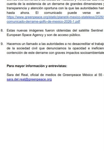 Un posicionamiento difundido por Greenpeace México� y la Red del Corredor Arrecifal sostiene que el impacto del crudo se ha extendido a lo largo de cientos de kilómetros de litoral, afectando ecosistemas y medios de vida en Veracruz y Tabasco.