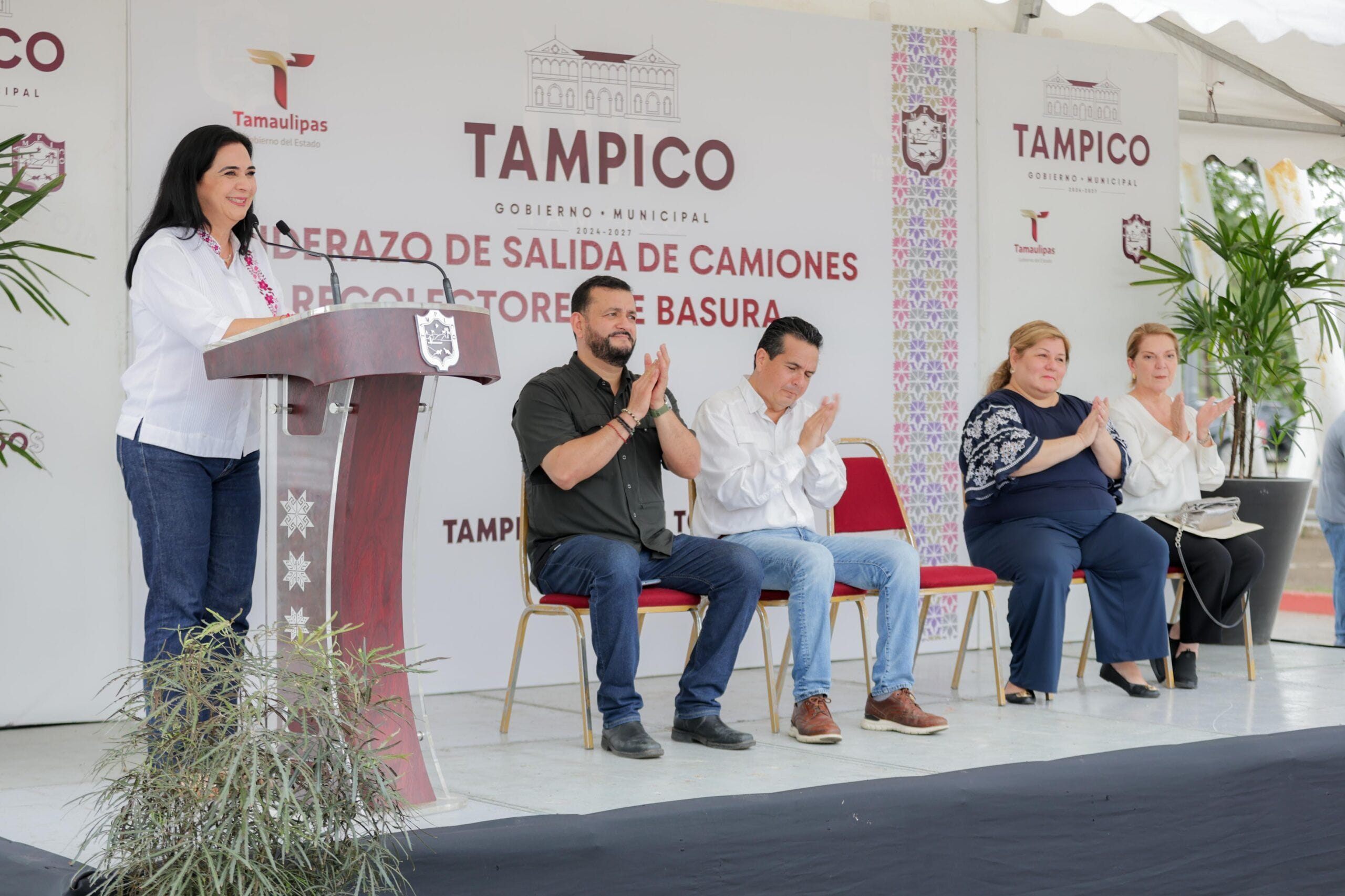 Cumpliendo el compromiso de ampliar la cobertura en el servicio de recolección de basura en el municipio de Tampico, la alcaldesa Mónica Villarreal Anaya dio el banderazo de salida a 10 nuevos camiones recolectores proporcionados por el Gobierno del Estado, con una inversión de 36 millones de pesos.