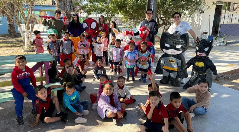 Las actividades siguieron con la donación de piñatas al Jardín de Niños del Ejido La Luz, llevando alegría a la niñez y fortaleciendo los lazos comunitarios. De igual forma, la comunidad estudiantil y docente llevó cuentos, libros de colorear y colores a la Casa Hogar del Niño Matamorense, así como a la Escuela Primaria Miguel García Posada, fomentando la creatividad y el aprendizaje de la niñez.