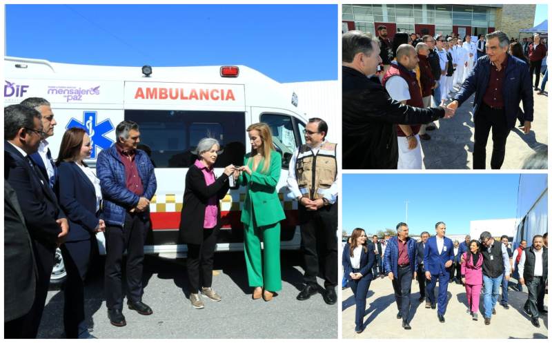 En este centro, que forma parte de la estrategia de recepción «México te Abraza» y que se ubica en la explanada del Polyforum Rodolfo Torre Cantú, el gobernador y la doctora María de Villarreal, presidenta del DIF Tamaulipas, acompañados por Ángel Elías Aguilar, coordinador de Estrategia de Retorno Humano, entregaron una ambulancia debidamente equipada para brindar servicio y traslados a las y los repatriados.