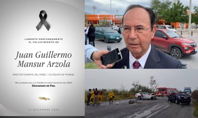 Ciudad Victoria, Tamaulipas.– El Gobierno del Estado de Tamaulipas informa el fallecimiento del director general del Instituto Tamaulipeco de Becas, Estímulos y Créditos Educativos (ITABEC), doctor Juan Guillermo Mansur Arzola, y de dos personas más en percance carretero este domingo en el Libramiento San Fernando, cuando se dirigían a cumplir tareas oficiales en el poblado Higuerillas, municipio de Matamoros.