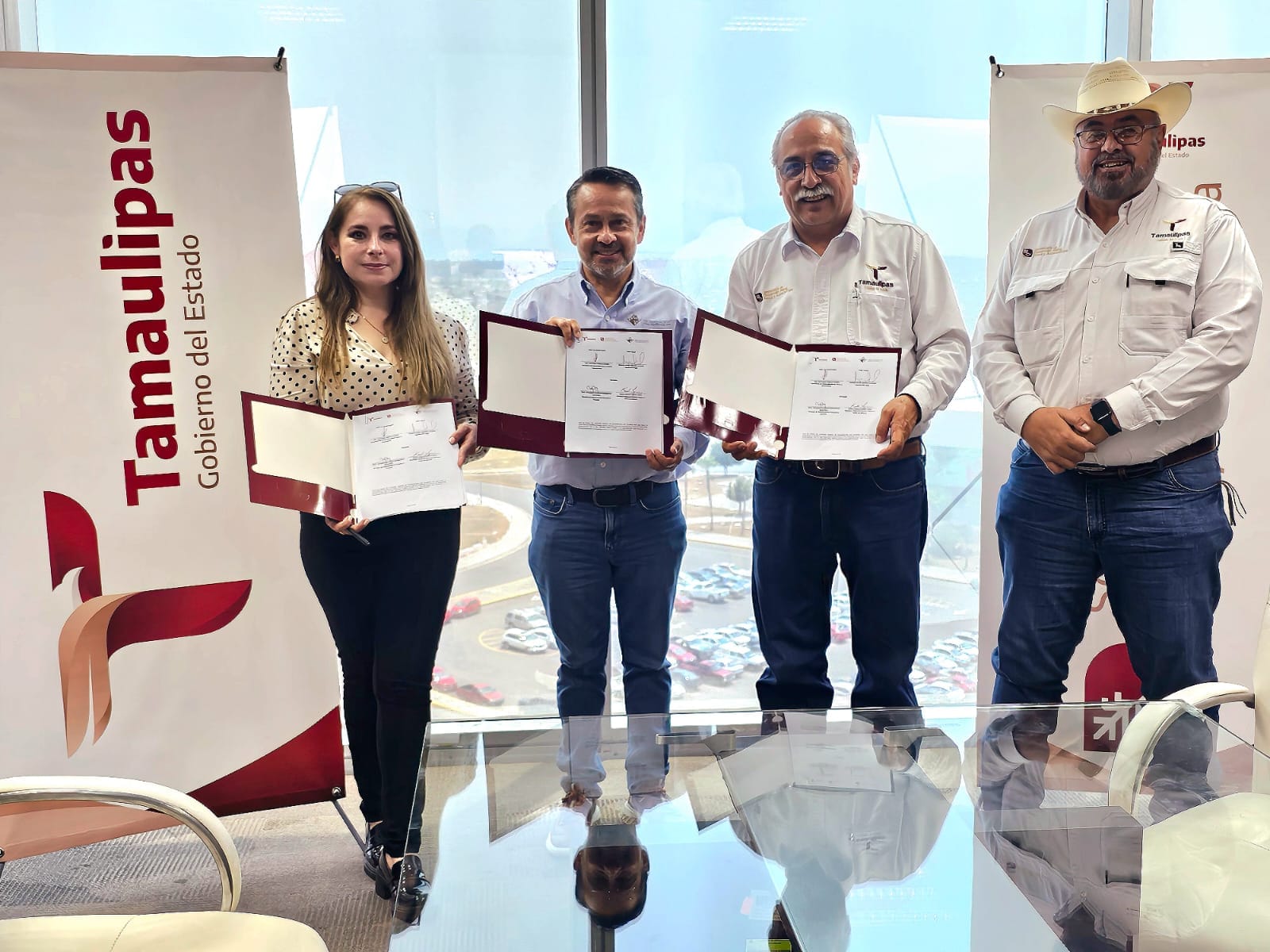 Durante la firma del convenio, estuvieron presentes Sergio Jiménez Ledezma, director ejecutivo de Organización Vida Silvestre; Karla Logan López, directora de la oficina Zona Centro de Organización Vida Silvestre; Fernando Galicia Zamora, coordinador técnico de la Secretaría de Desarrollo Rural, Pesca y Acuacultura y Eduardo Maraboto Martínez, director de Extensionismo Pecuario.