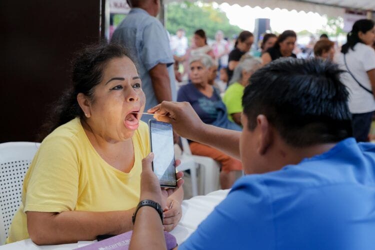 Durante la jornada se instalaron módulos de salud, atención ciudadana, Registro Civil, Comapa, Instituto de la Mujer, Protección Animal y servicios como cortes de cabello, venta de abarrotes a bajo costo y exámenes visuales. También se entregaron 50 baumanómetros a pacientes hipertensos, una acción simbólica que apunta a fomentar la prevención, aunque insuficiente frente a los desafíos estructurales del sistema de salud local.