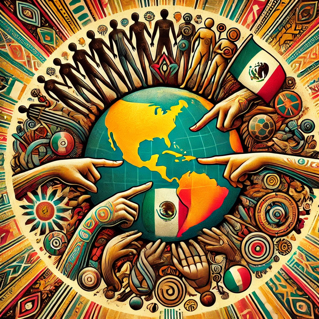 * La magen fue generada con IA, que representa la filosofía de la solidaridad, integrando elementos mexicanos y universales para simbolizar la unión y el apoyo colectivo en México y el mundo.
