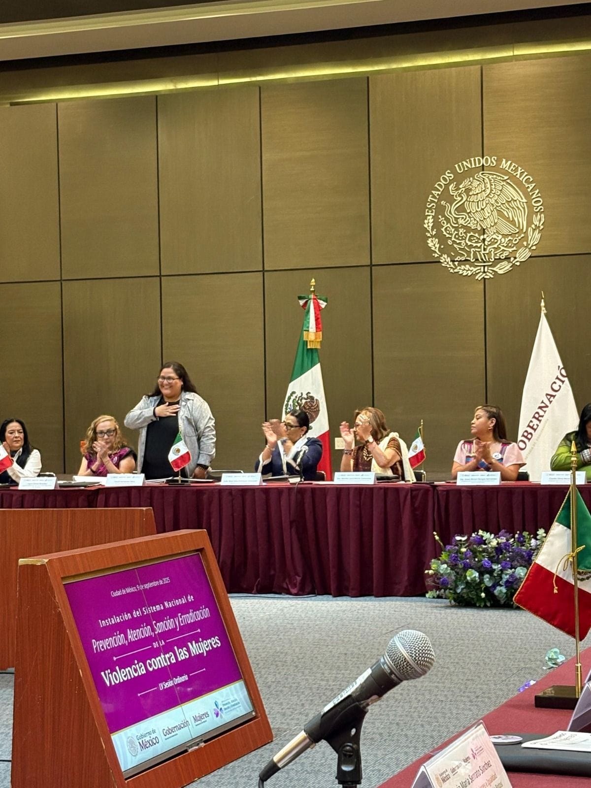 Ciudad de México, septiembre 11 de 2025.– La directora general del Instituto de las Mujeres en Tamaulipas(IMT), Marcia Benavides, participó en la LV Sesión Ordinaria del Sistema Nacional de Prevención, Atención, Sanción y Erradicación de la Violencia contra las Mujeres (SNPASEVM), realizada en el Salón Revolución de la Secretaría de Gobernación.