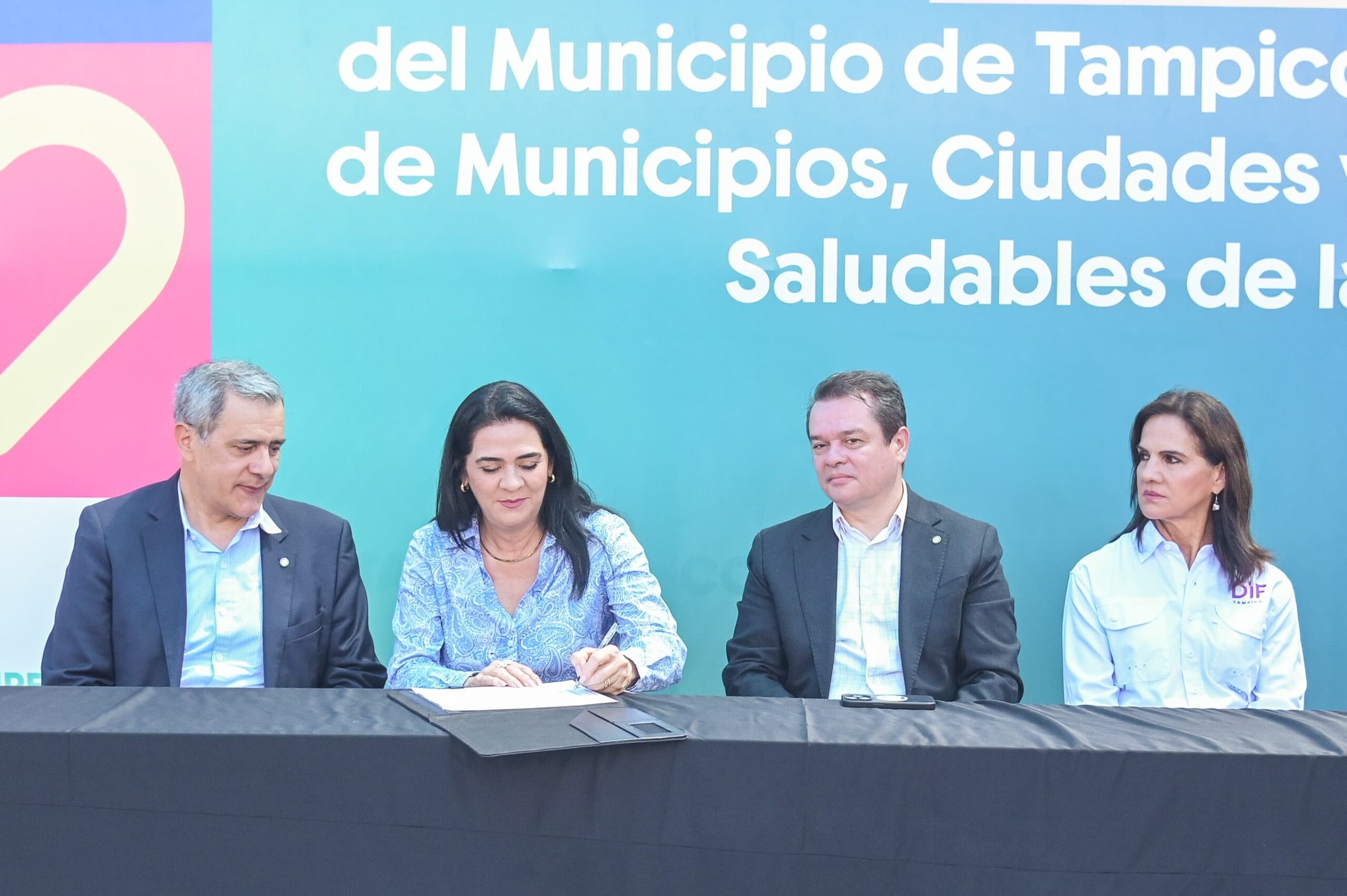 En el evento, al que también asistió la Dra. Ofelia Cantú Rodríguez, Directora de Salud en el municipio; y el Dr. José Moya Medina, representante de la Organización Panamericana de la Salud en México (OPS), la autoridad municipal signó el convenio de adhesión de Tampico al Movimiento de Municipios, Ciudades y Comunidades Saludables de la Organización Panamericana de la Salud en México.