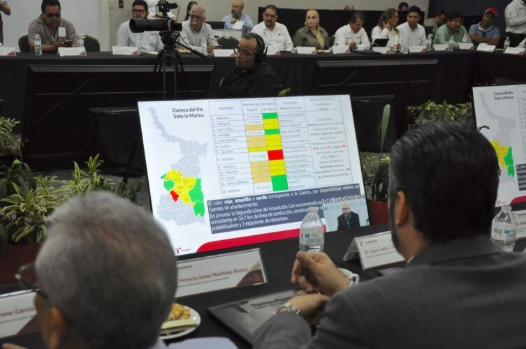 Informó que los municipios de la zona fronteriza se mantienen en color rojo, derivado de los bajos niveles de almacenamiento en las presas internacionales La Amistad y Falcón; no obstante, aseguró que el abasto de agua para consumo humano está garantizado.