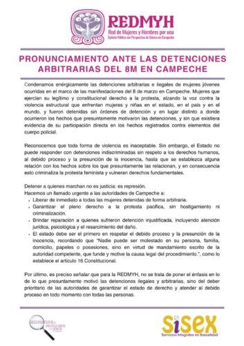 Pronunciamiento ante las detenciones arbitrarias del 8M en Campeche