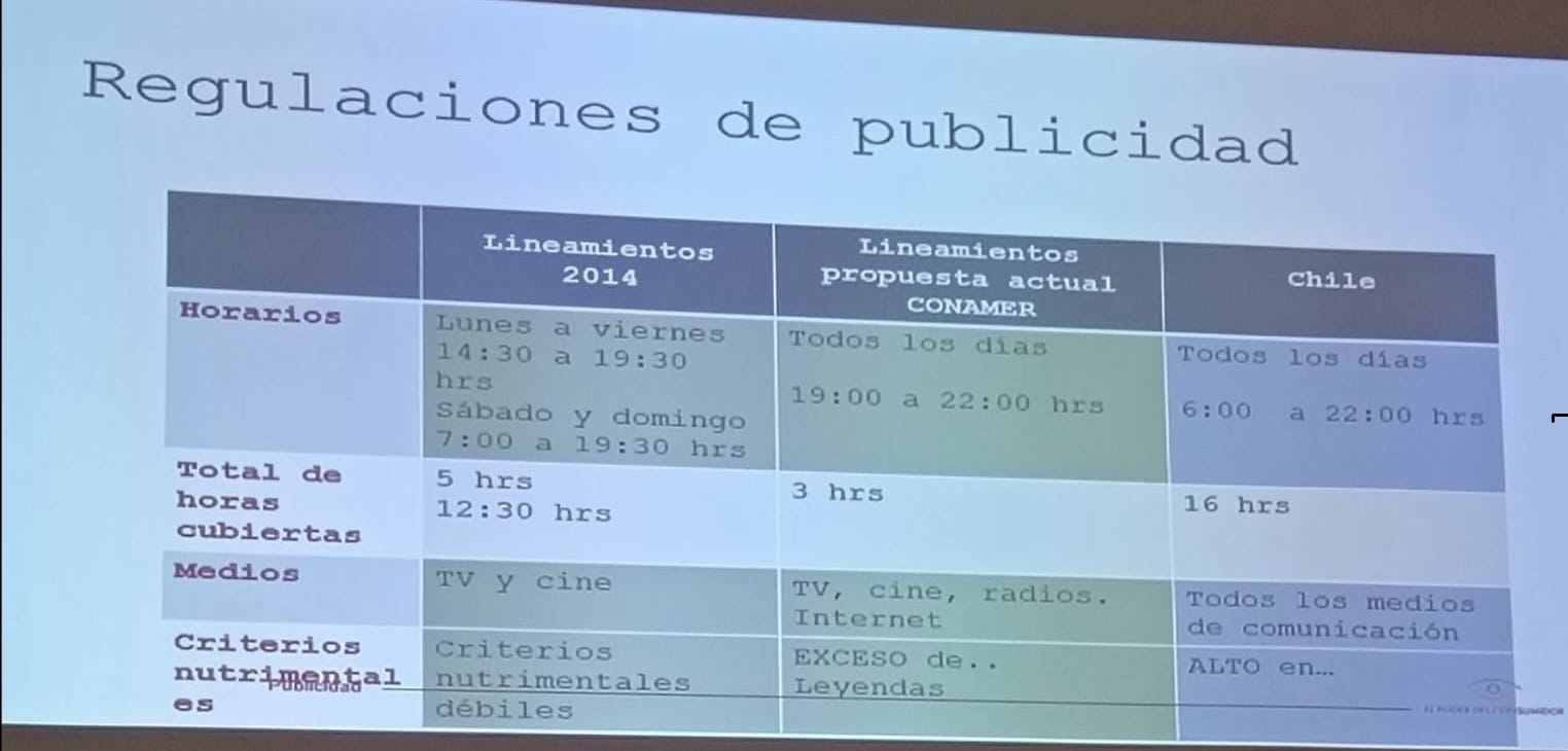 La propuesta de COFEPRIS plantea restringir la publicidad de alimentos ultraprocesados en horarios específicos, pero limitar esta restricción a solo 3 horas al día deja expuestos a millones de menores a estrategias de marketing que influyen directamente en sus hábitos alimenticios. Por el contrario, Chile ha sido reconocido internacionalmente por su Ley de Etiquetado y Publicidad que protege a la infancia al restringir esta publicidad durante 16 horas al día.