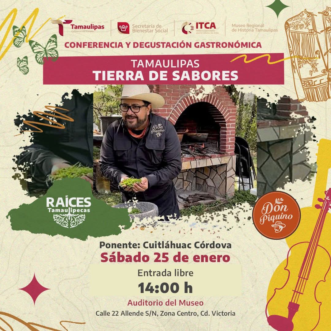 A propósito de esta celebración, este sábado 25 de enero en el auditorio del Museo Regional de Historia de Tamaulipas se llevará a cabo la Conferencia y Degustación Gastronómica «Tamaulipas: tierra de sabores», encabezada por el reconocido promotor culinario Cuitláhuac Córdova, quien hablará sobre la tradición de la cocina tamaulipeca y la conservación de la misma desde Don Piquino.