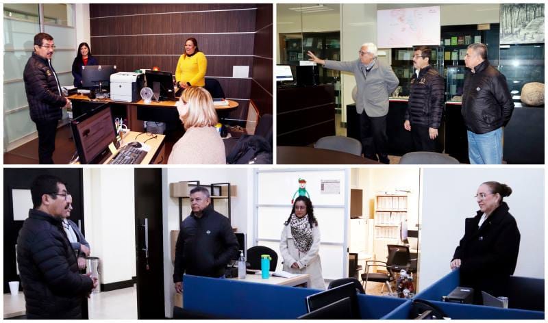 Acompañado por el secretario de Investigación y Posgrado, Fernando Leal Ríos, el rector visitó también la coordinación de Talento Humano, la Dirección de Estudios de Opinión, la Dirección de Posgrado y la Dirección de Investigación, entre otras oficinas ubicadas en distintos espacios del edificio.