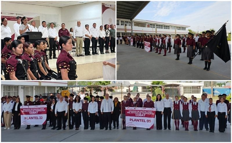 Jiménez, Tamaulipas.– Con el objetivo de fomentar entre las y los estudiantes la identidad nacional, el respeto por los símbolos patrios y promover su participación en actividades de carácter cívico, el Colegio de Bachilleres del Estado de Tamaulipas (COBAT) llevó a cabo, en sus etapas regionales, el Concurso Estatal de Escoltas y Banda de Guerra 2025.