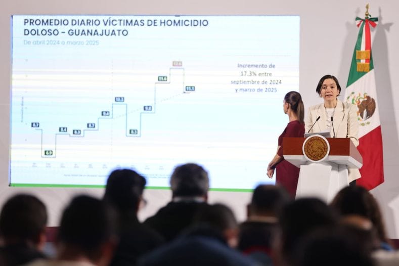 Señaló que entre septiembre de 2024 y marzo de 2025, en el promedio diario de víctimas de homicidio doloso, la reducción observada representa una disminución de 14 por ciento en los primeros seis meses de la actual administración.